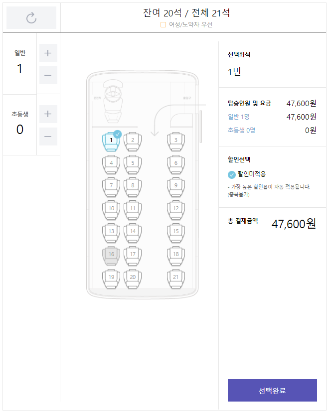 - 출발시간 지난 후에는 승차권 발권이 불가합니다. 창구 발권 시 반드시 출발시간 이전에 커미널에 도착하셔서 발권 받으시기 바랍니다.