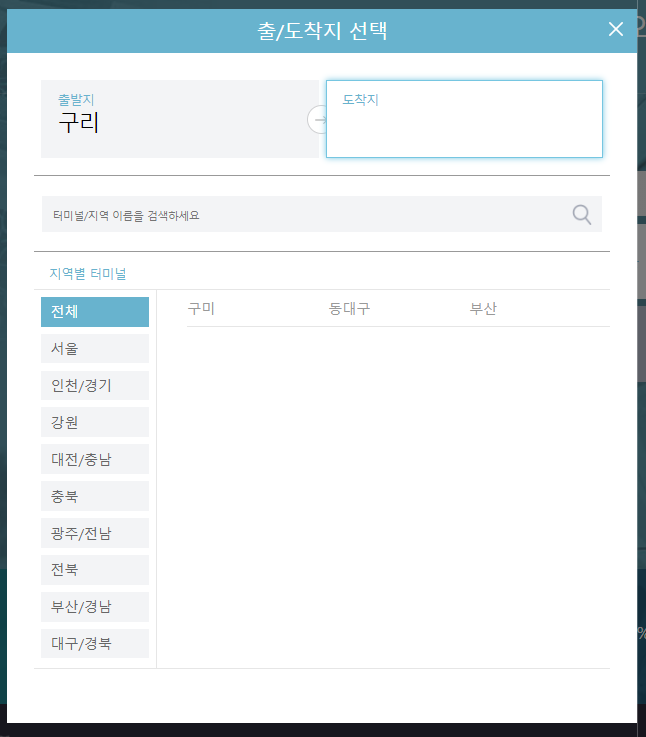 | ▶ 구리 고속버스터미널 시간표 알아보기 ▶ 버스 요금 및 소요 시간 ▶ 고속버스 통합예매 방법 ▶ 유의사항 ▶ 터미널 정보 |
