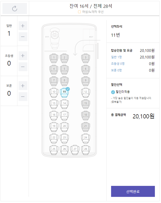 - 출발시간 지난 후에는 승차권 발권이 불가합니다. 창구 발권 시 반드시 출발시간 이전에 커미널에 도착하셔서 발권 받으시기 바랍니다.