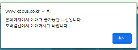 - 승차권 예매 서비스는 실시간으로 온라인 처리가 되므로 예매 시 회선장애나 키타 통신장애로 인하여 성공여부를 확인하지 못하였을 경우 반드시 홈페이지의 예매확인/취소/변경 메뉴에서 확인하셔야 합니다.